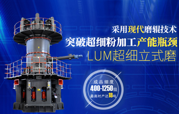 LUM超細(xì)立磨主要由電動機、減速機、磨輥裝置、磨盤裝置、加壓裝置、選粉機、機體和油站等組成。 主電機通過減速機帶動磨盤轉(zhuǎn)動,同時風(fēng)從進風(fēng)口進入磨機,物料經(jīng)螺旋給料機下料口落在磨盤中央,在離心力的作用下,物料從磨盤中央向邊緣均勻移動,經(jīng)過磨盤上的粉磨輥道區(qū)域時,受到磨輥的碾壓,大塊物料直接被壓碎,細(xì)粒物料受擠壓后形成料床進行粒間粉碎。被粉碎的物料繼續(xù)向磨盤邊緣移動,直到被風(fēng)環(huán)處的強氣流帶走,而較大的顆粒物料又重新掉落到磨盤上繼續(xù)粉碎,氣流中的物料經(jīng)過上部的分離器時,在轉(zhuǎn)子葉片的作用下,粗顆粒重新回到磨盤上粉磨,合格的細(xì)粉隨氣流一起出磨,被系統(tǒng)的集粉器收集,被收集到的粉料即為超細(xì)立磨磨出的產(chǎn)品。混入物料的鐵塊等雜物隨物料運動到磨盤邊緣時,由于自身重量大而不能被風(fēng)吹起,跌落至磨機下腔被安裝在磨盤底部的刮料板刮入排渣口排出機外。