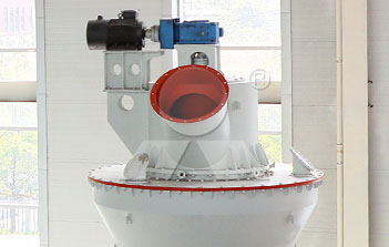 主電機(jī)通過(guò)減速機(jī)帶動(dòng)磨盤(pán)轉(zhuǎn)動(dòng),同時(shí)風(fēng)從進(jìn)風(fēng)口進(jìn)入磨機(jī),物料經(jīng)螺旋給料機(jī)下料口落在磨盤(pán)中央,在離心力的作用下,物料從磨盤(pán)中央向邊緣均勻移動(dòng),經(jīng)過(guò)磨盤(pán)上的粉磨輥道區(qū)域時(shí),受到磨輥的碾壓,大塊物料直接被壓碎,細(xì)粒物料受擠壓后形成料床進(jìn)行粒間粉碎。被粉碎的物料繼續(xù)向磨盤(pán)邊緣移動(dòng),直到被風(fēng)環(huán)處的強(qiáng)氣流帶走,而較大的顆粒物料又重新掉落到磨盤(pán)上繼續(xù)粉碎,氣流中的物料經(jīng)過(guò)上部的分離器時(shí),在分離器葉片的作用下,粗顆粒重新回到磨盤(pán)上粉磨,合格的細(xì)粉隨氣流一起出磨,被系統(tǒng)的集粉器收集,被收集到的粉料即為超細(xì)立磨磨出的產(chǎn)品。混入物料的鐵塊等雜物隨物料運(yùn)動(dòng)到磨盤(pán)邊緣時(shí),由于自身重量大而不能被風(fēng)吹起,跌落至磨機(jī)下腔被安裝在磨盤(pán)底部的刮料板刮入排渣口排出機(jī)外。