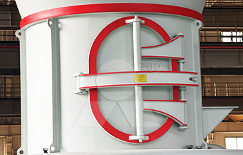 破碎后合格的物料,經變頻皮帶給料機均勻定量連續地送入主機磨室內進行研磨。粉磨后的物料被風機氣流送入選粉機進行分級,在分析機的作用下,不符合細度要求的物料落入磨室內重新碾磨,合格的物料則隨氣流經管道進入旋風集粉器內,進行分離收集,經排料裝置排出即為成品粉體。分離后的氣流通過旋風集粉器上端回風管進入風機。該系統在負壓狀態下運行,設備配有脈沖除塵器,符合國家環保標準。