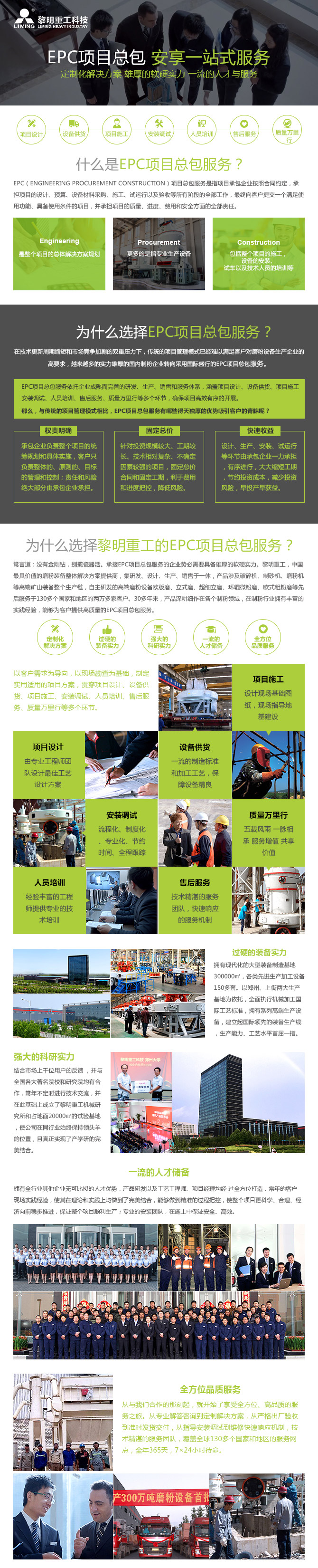 常言道:沒有金剛鉆,別攬瓷器活。承接EPC項(xiàng)目總包服務(wù)的企業(yè)需要具備雄厚的軟硬實(shí)力。黎明重工,中國(guó)頗具價(jià)值的磨粉裝備整體解決方案提供商,集研發(fā)、設(shè)計(jì)、生產(chǎn)、銷售于一體,產(chǎn)品涉及破碎機(jī)、制砂機(jī)、磨粉機(jī)等礦山裝備整個(gè)生產(chǎn)鏈,自主研發(fā)的磨粉設(shè)備歐版磨、立式磨、超細(xì)立磨、環(huán)輥微粉磨、歐式粗粉磨等先后服務(wù)于130多個(gè)國(guó)家和地區(qū)的兩萬多家客戶。30多年來,產(chǎn)品深耕細(xì)作在各個(gè)制粉領(lǐng)域,在制粉行業(yè)擁有豐富的實(shí)踐經(jīng)驗(yàn),能夠?yàn)榭蛻籼峁└哔|(zhì)量的EPC項(xiàng)目總包服務(wù)。