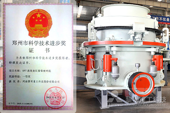 2015年8月,黎明重工HPT液壓圓錐破碎機正式被鄭州市科技局評定為“鄭州市科技進步一等獎”。HPT系列產(chǎn)品通過對層壓破碎、偏心旋轉(zhuǎn)、全接觸浮動密封、碟簧組變形補償?shù)仍砑夹g(shù)的研究,解決了多缸圓錐破普遍存在的潤滑系統(tǒng)密封性差、振動大、效率低、產(chǎn)量低、無過載保護、軋臼壁固定松動等難題。