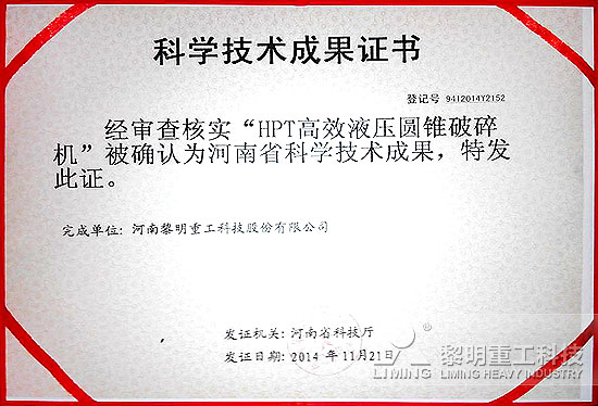 展前捷報(bào):HPT液壓圓錐破、LUM超細(xì)立磨榮獲科學(xué)技術(shù)成果證書