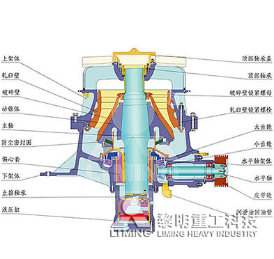 HST單缸液壓圓錐破碎機主要由上架體、中架體(中碎型)、下架體、動錐部、偏心套部、傳動部、液壓缸部等部件組成。